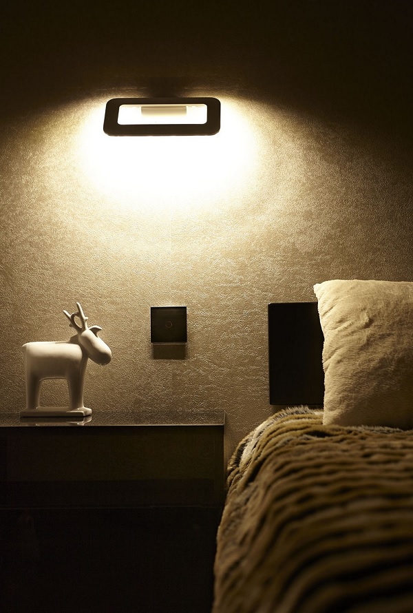 Ideea centrală din spatele amenajării dormitorului pare să fie, mai mult decât în zona de zi, cea de confort propice odihnei. Aici, luminozitatea albului este înlocuită de efectul relaxant al nuanțelor de crem și maro, în timp ce duritatea negrului este „îndulcită” de o nuanță relaxantă de gri. Nu lipsesc nici elementele originale de design, precum cuvertura de pat cu aspect de blană sau statueta de pe noptieră.